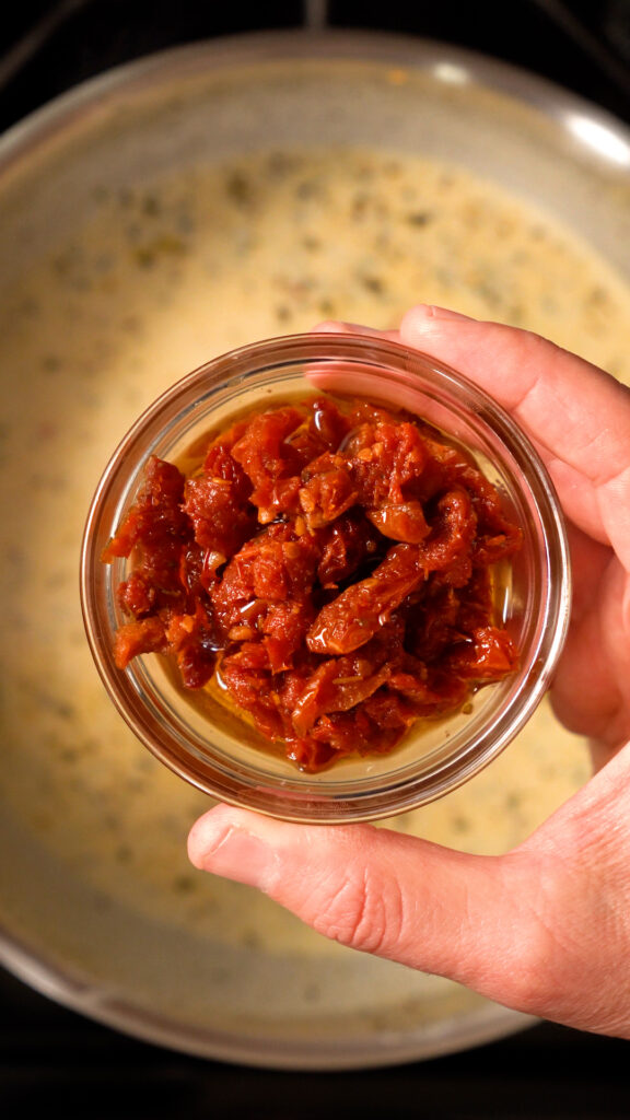 The Marry Me Sauce – For the sauce we’ll be utilizing vegan butter, garlic, Italian seasoning, one thing spicy like some calabrian chiles or purple pepper flakes, vegan chick’n or veggie inventory, cashew cream, vegan parmesan and solar dried tomatoes.