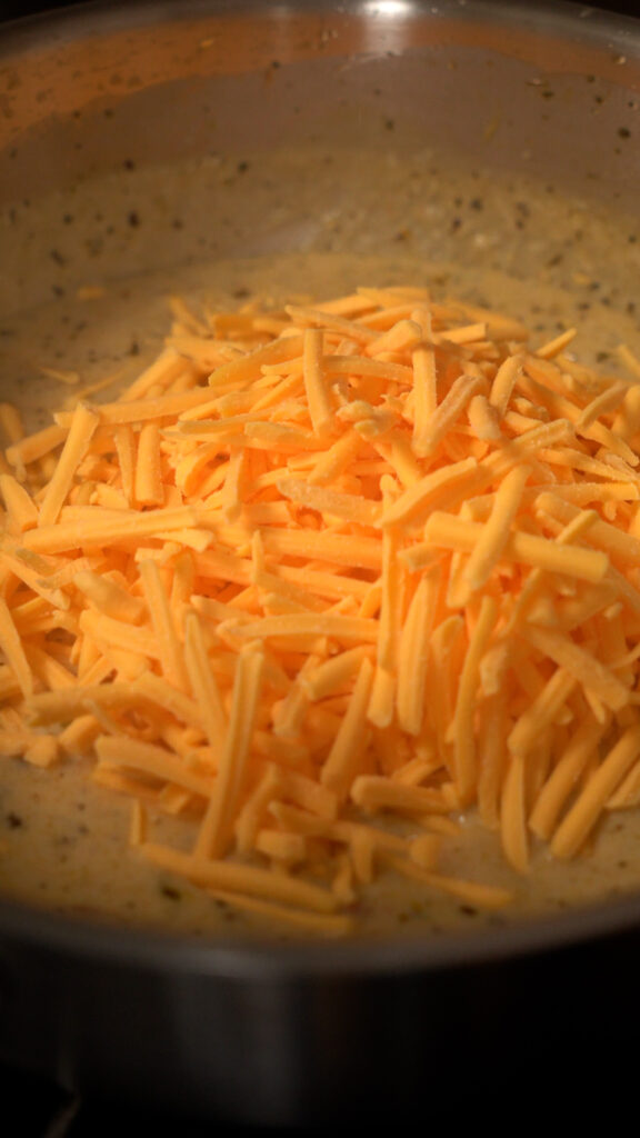 After that we’ll add in some Vegan Cheddar Shreds (I like Observe Your Coronary heart and Violife), and a few non-compulsory Tapioca Starch to thicken it. You too can add some pasta water in the event you like as effectively. This may assist if the sauce is just too thick and it’ll additionally emulsify the sauce.