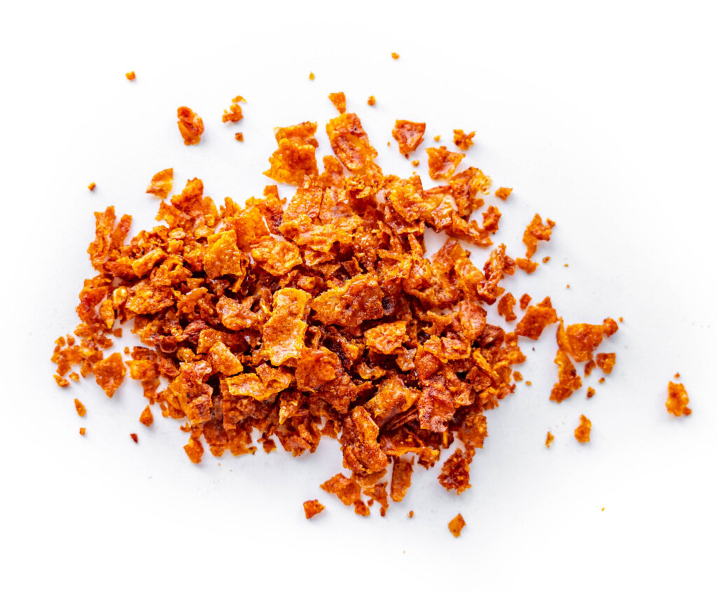 To tun this rice paper bacon into bacon bits, simply chop them up and add them to a salad, baked potato, no matter you need!
