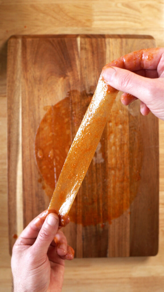 Utilizing a knife or pizza cutter, slice the rice paper into bacon strips (about 3/4 ā 1 inch thick).