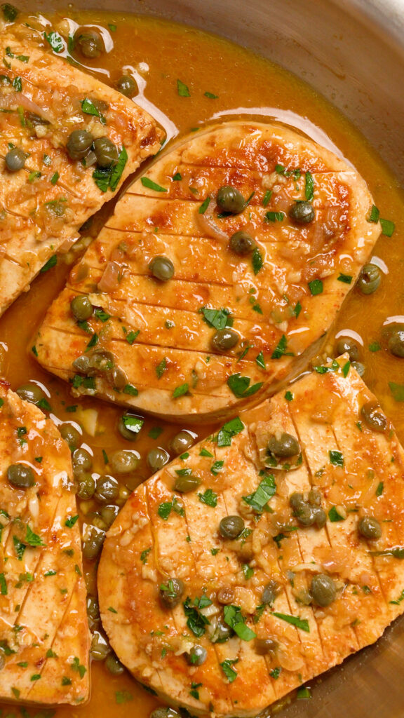 Instead of chicken weâll be using tofu, specifically my Grilled Tofu Chicken recipe. That recipe on its own is super flavorful, but when we add the amazing caper lemon butter sauce, it really takes it over the top!