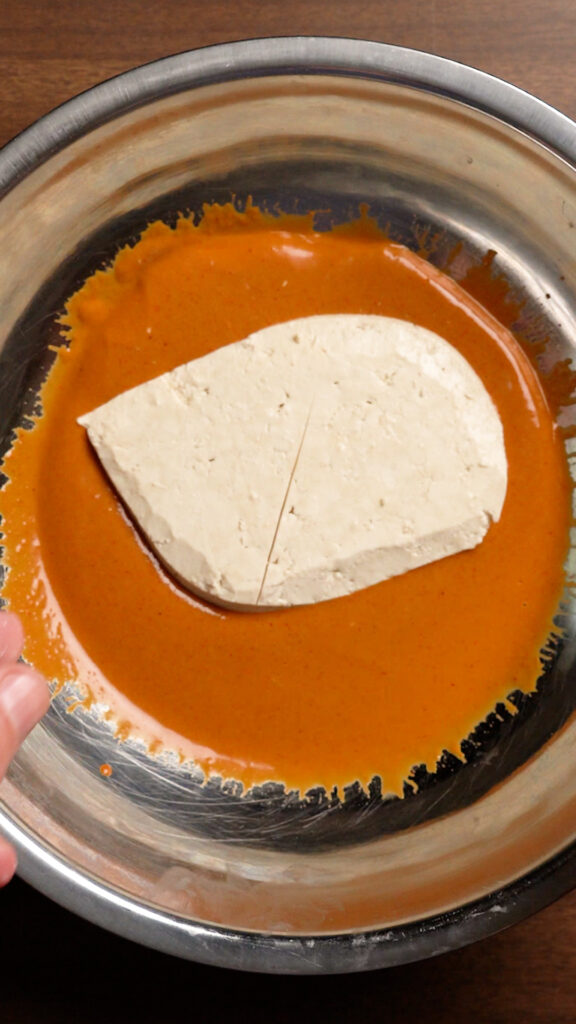 I also highly recommend scoring the tofu, which will accomplish two things. First it allows the marinade to get into the tofu and not just on the outside. And second, it creates a better texture when you bite into it as the tofu will âshredâ better.