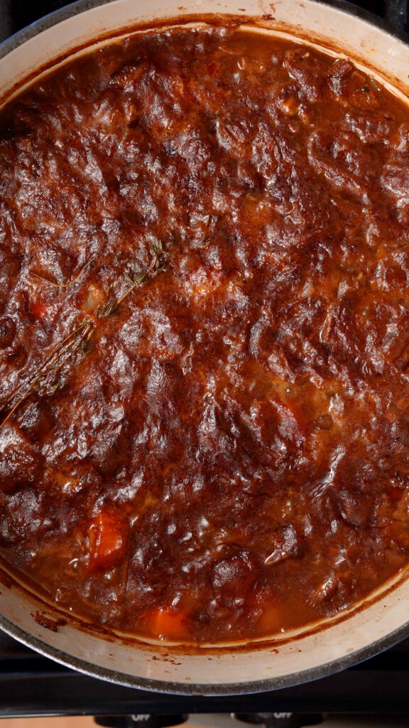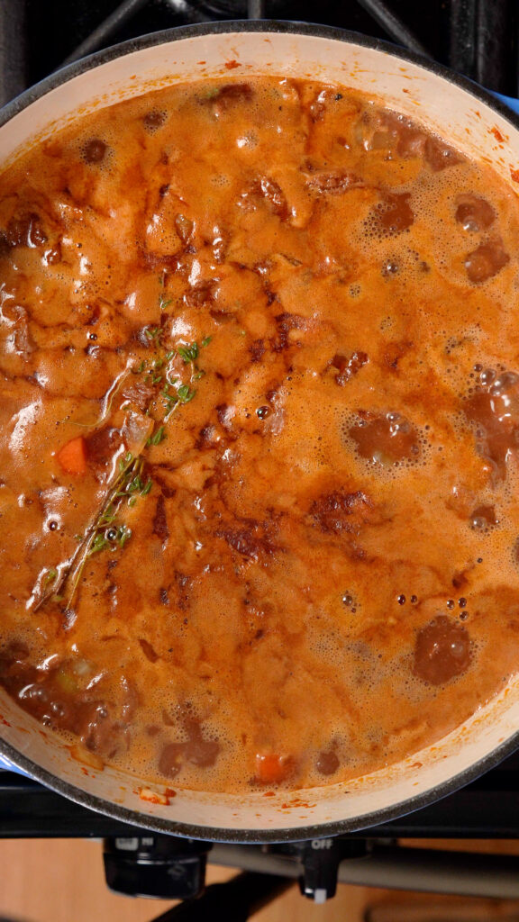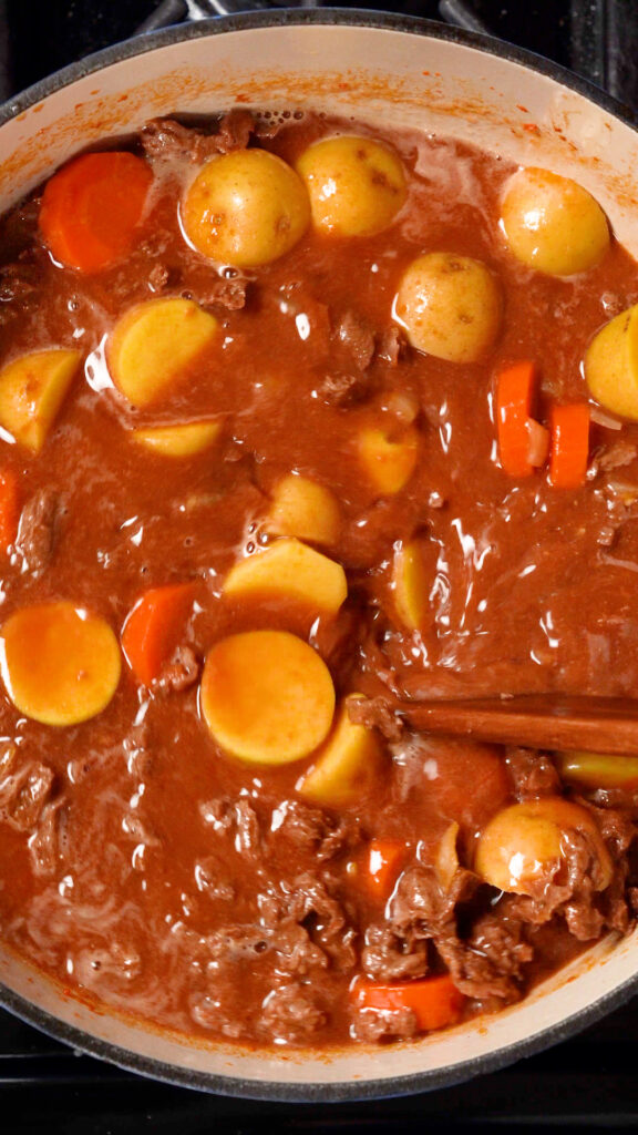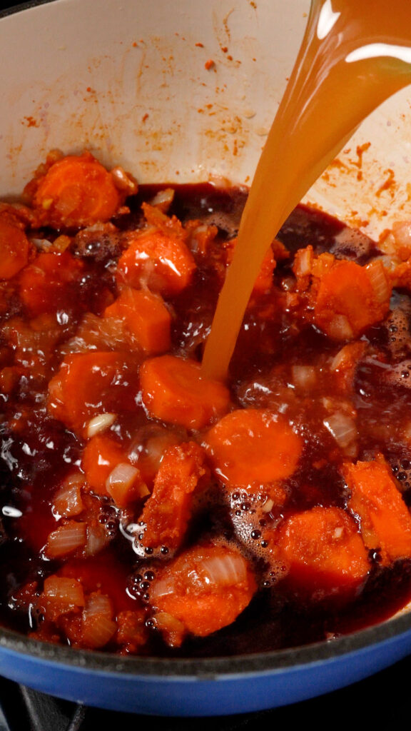 I like adding some dry red wine to my stew, but if you donât do alcohol, you can skip it and just replace with more broth instead.