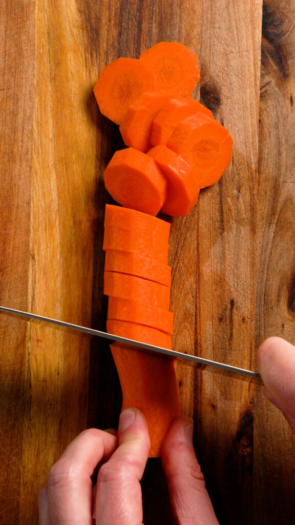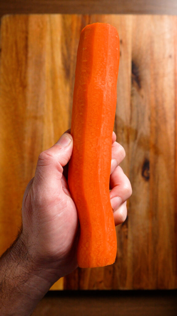 I recommend trying to get carrots that are the same width for the entire length. If you canât find that, donât worry. Just try to cut them into equal sized pieces.