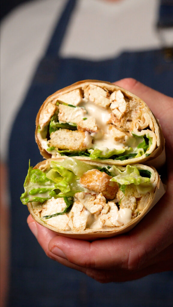 Whether you put it on a Salad or in a Wrap, this Vegan Chicken Caesar is just as ZIP ZAPPING Delicious as the traditional version!