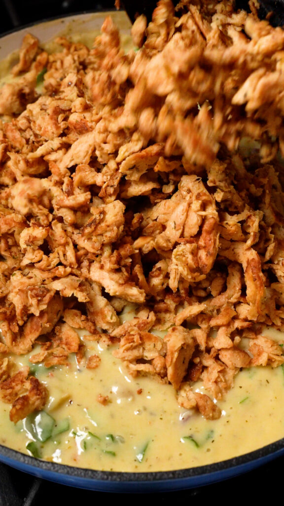 Any store-bought vegan chicken should work too. I’ve used Tofurky and Daring chicken and they both work great.