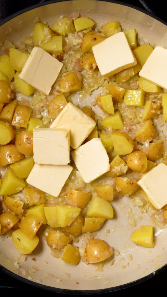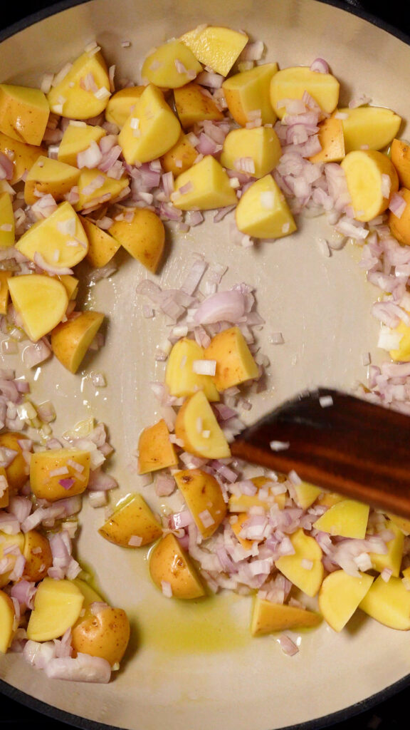 Next saute the diced potatoes and shallots in a little oil.