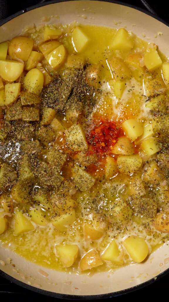 Toss in the 1/2 cup of vegan butter and stir to melt it. Then add in the Calabrian Chiles (or Red Pepper Flakes) and Italian Seasoning. Stir to combine.