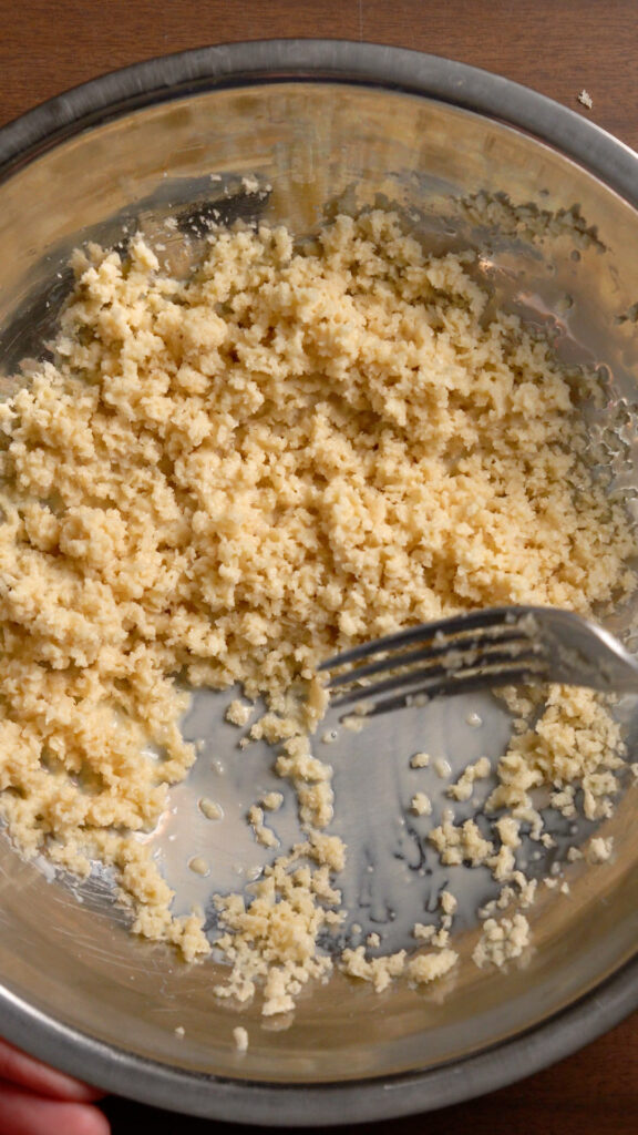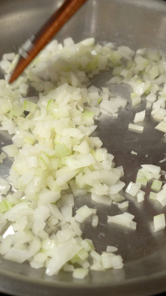 In a pan over medium heat, add a little cooking oil and heat up for a minute or two. Then add in the diced onions. Saute for 6 – 8 minutes or until softened and translucent. Add in the garlic and cook for 1 minute. Remove from heat and set aside and let cool.