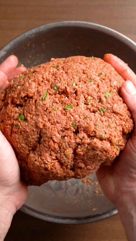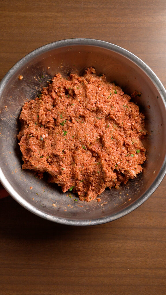 Once meat is mixed well, cover and refrigerate for 30 minutes.