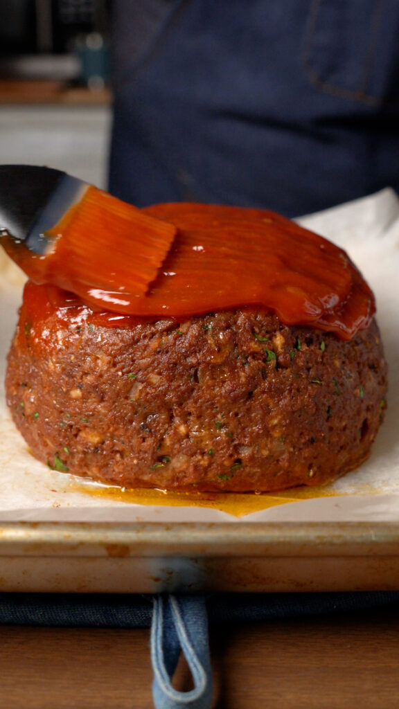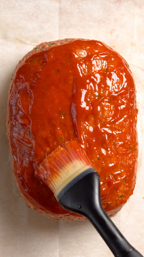 Brush half the glaze on the meatloaf, and bake for 30 minutes.