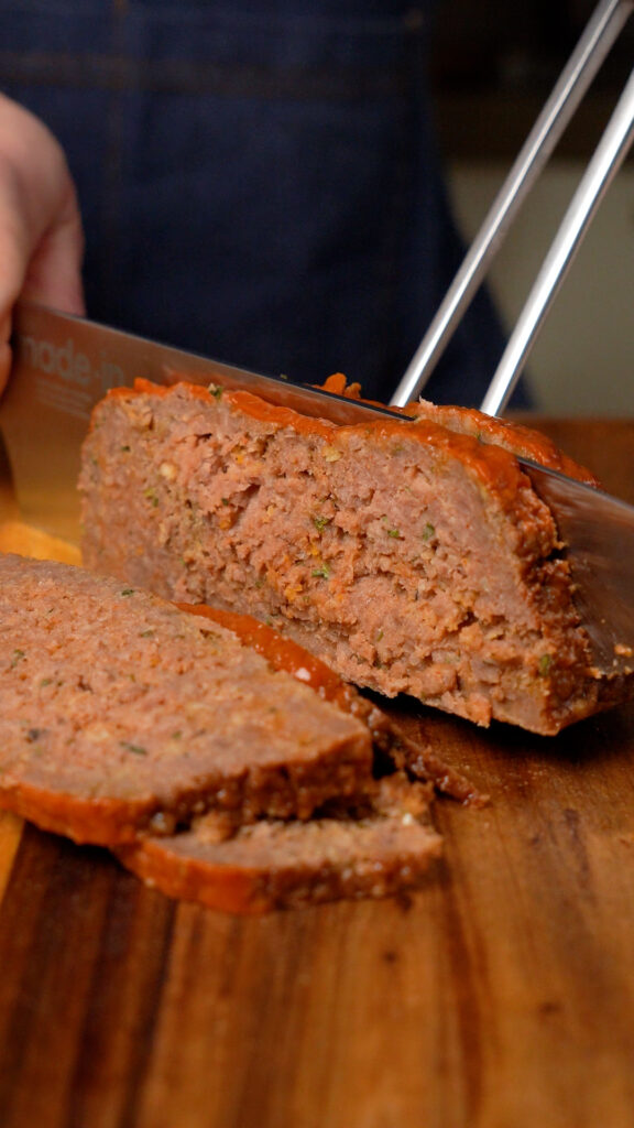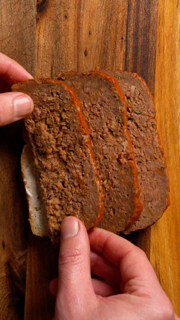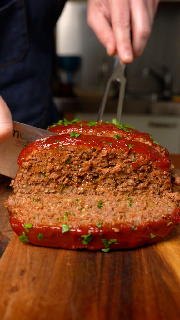 Let the meatloaf cool (ideally on a cooling rack) for 10 minutes, then slice and serve how you like!